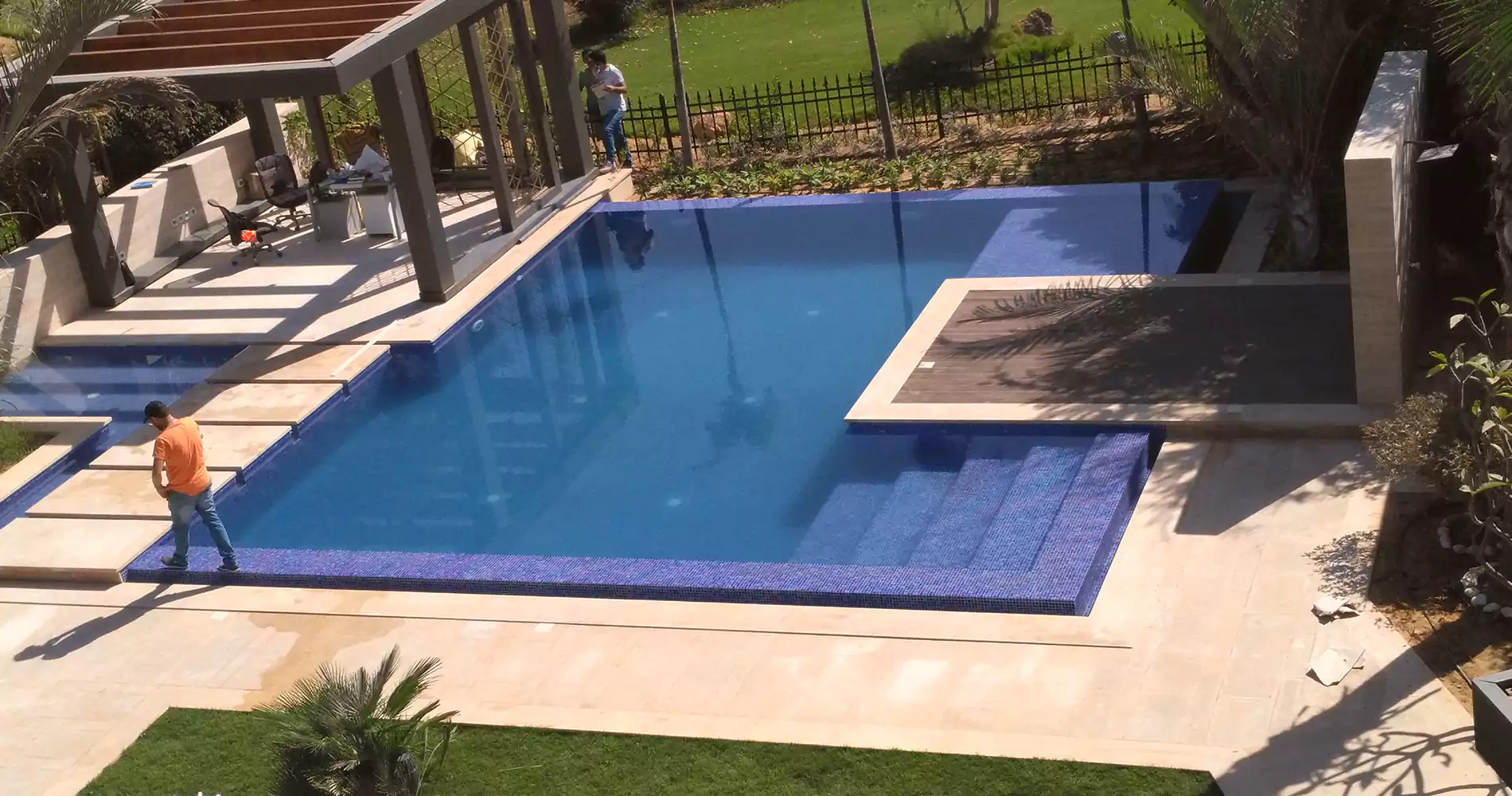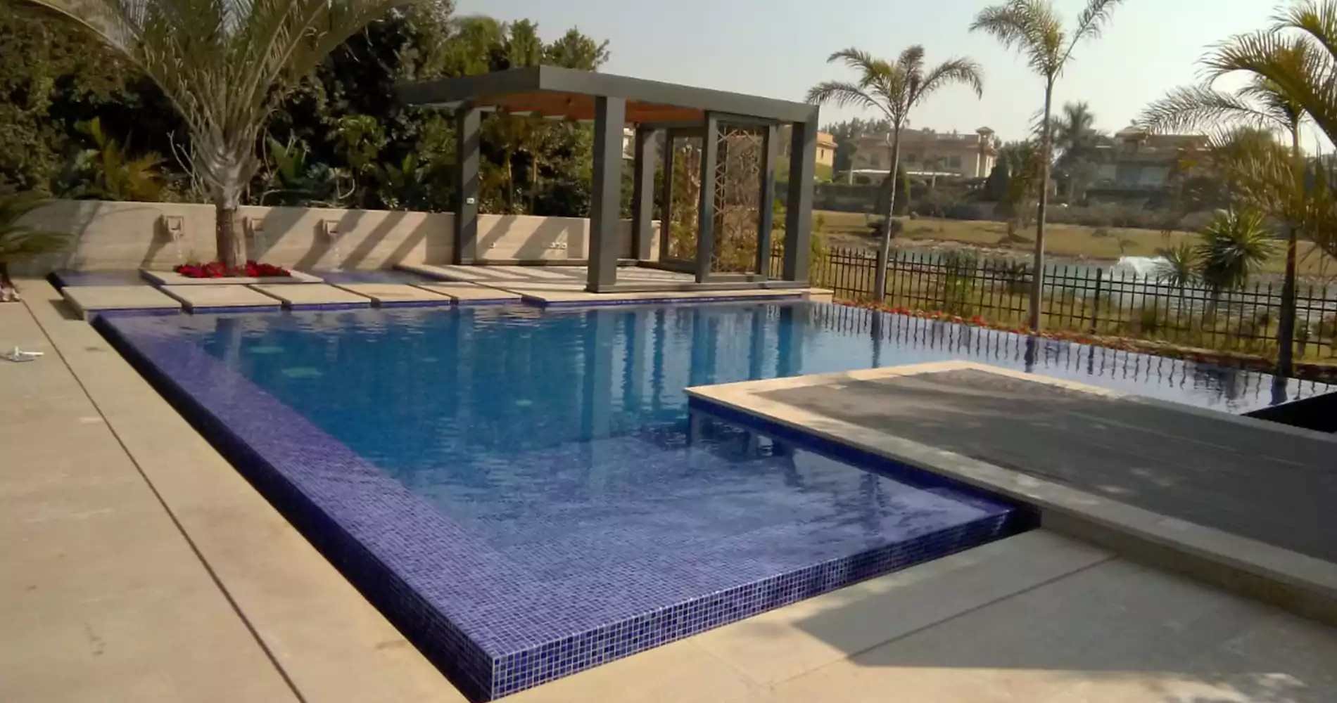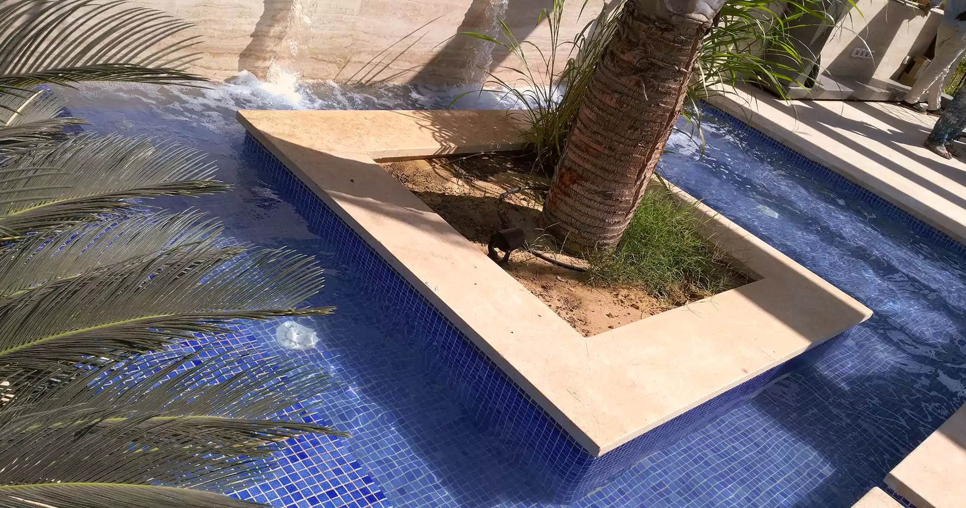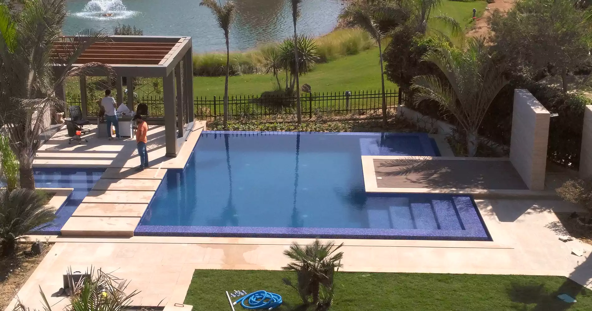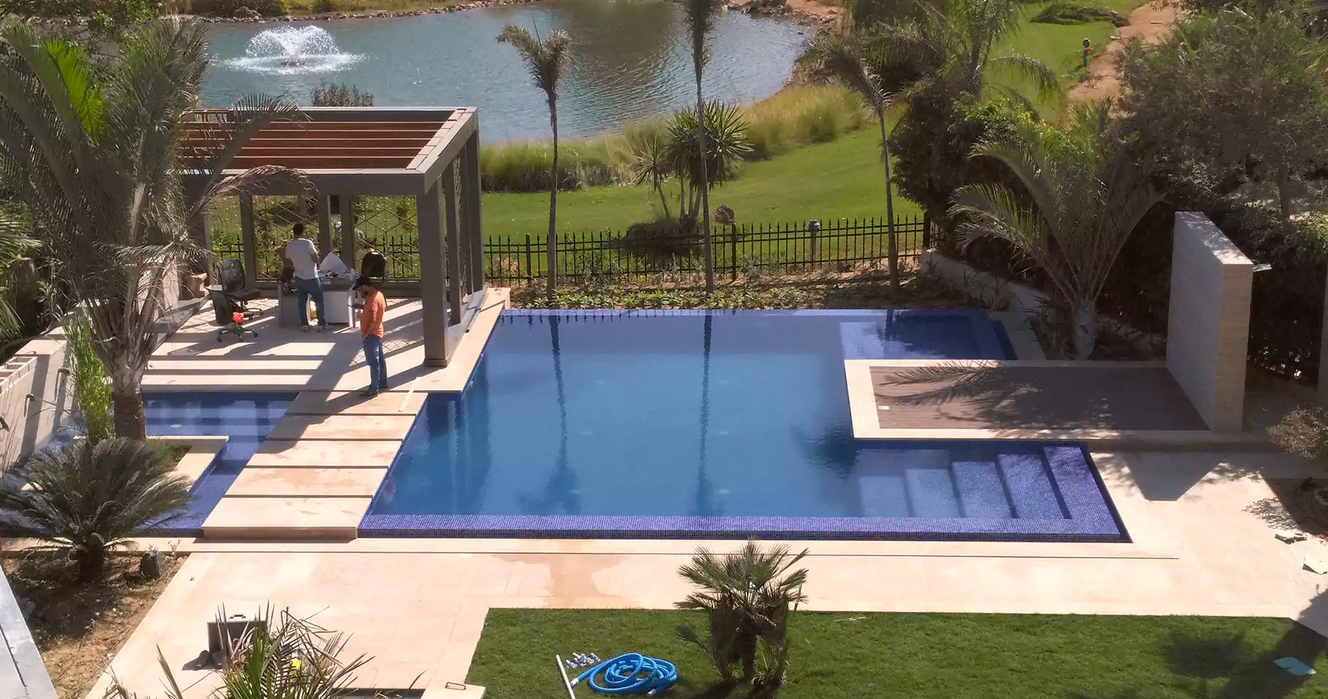 انشاء الشلالات الخاصة بحمام السباحة لفيلا سكنية .