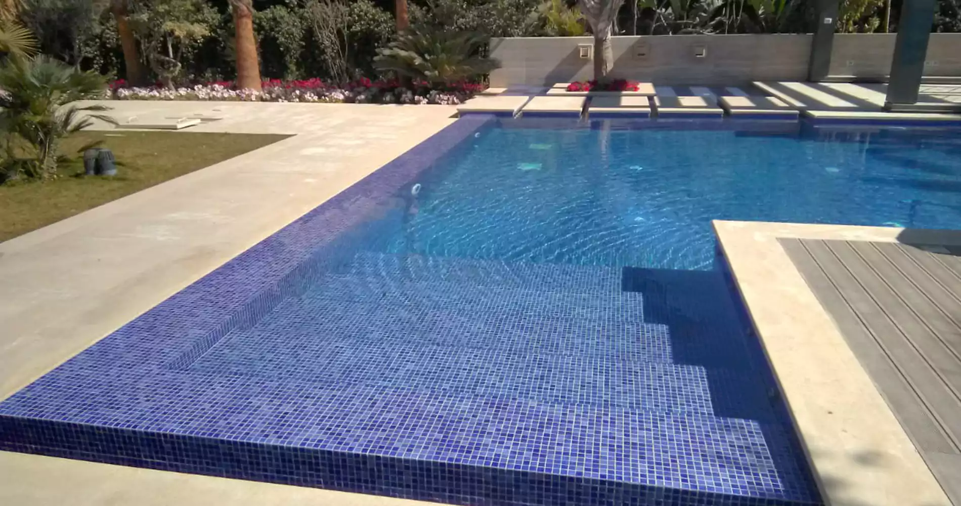 تشطيب حمام سباحة زجاجي لفيلا سكنية رقم (١٧٤)