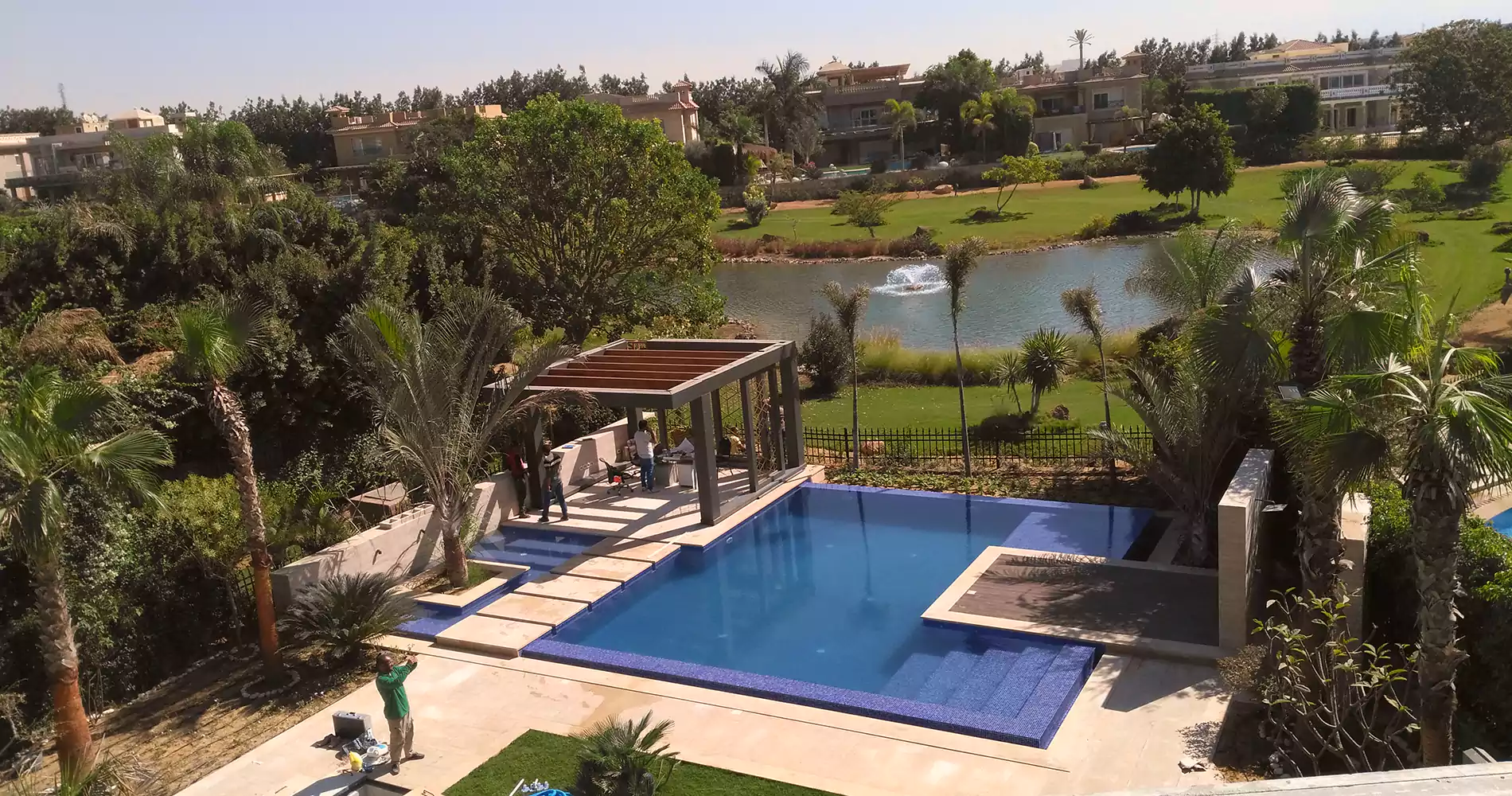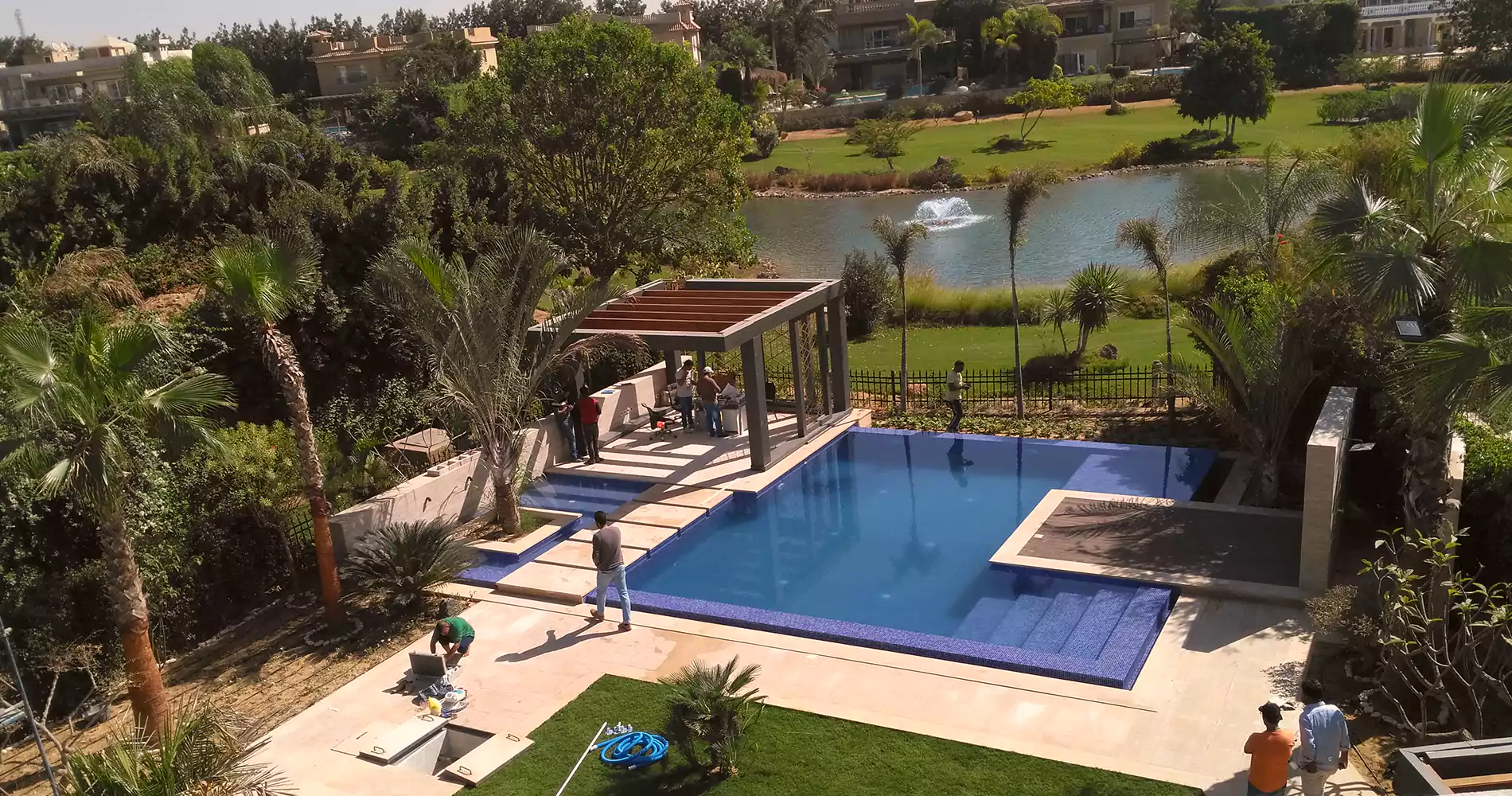 إنشاء حمام سباحة ولاند سكيب لفيلا سكنية